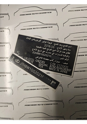 Lexus GCC Vin Label/Sticker Set